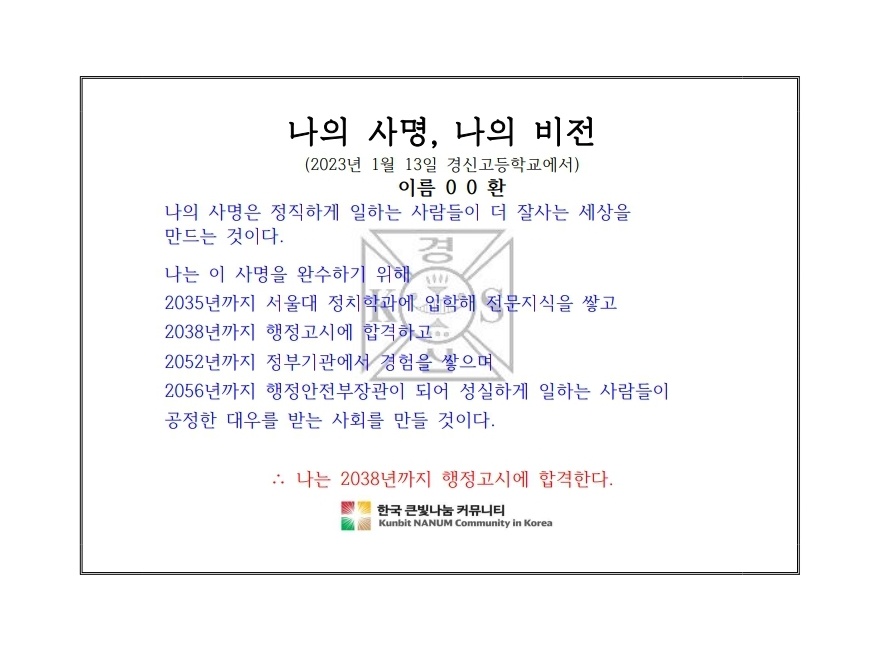 1기 꿈설계아카데미 '나의 사명문'