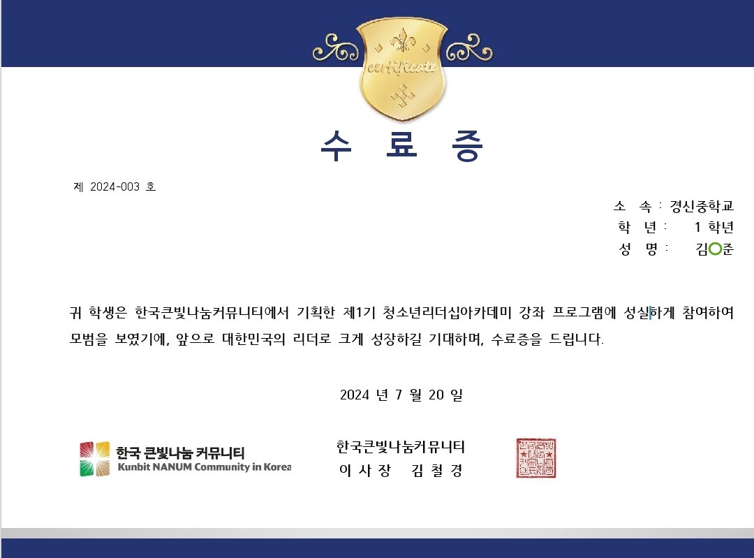 한국큰빛나눔 커뮤니티 Kunbit NANUM Community in Korea