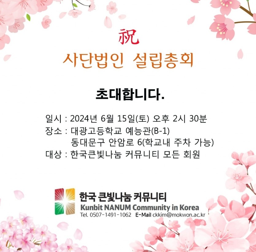 큰빛나눔커뮤니티 사단법인 설립총회 안내