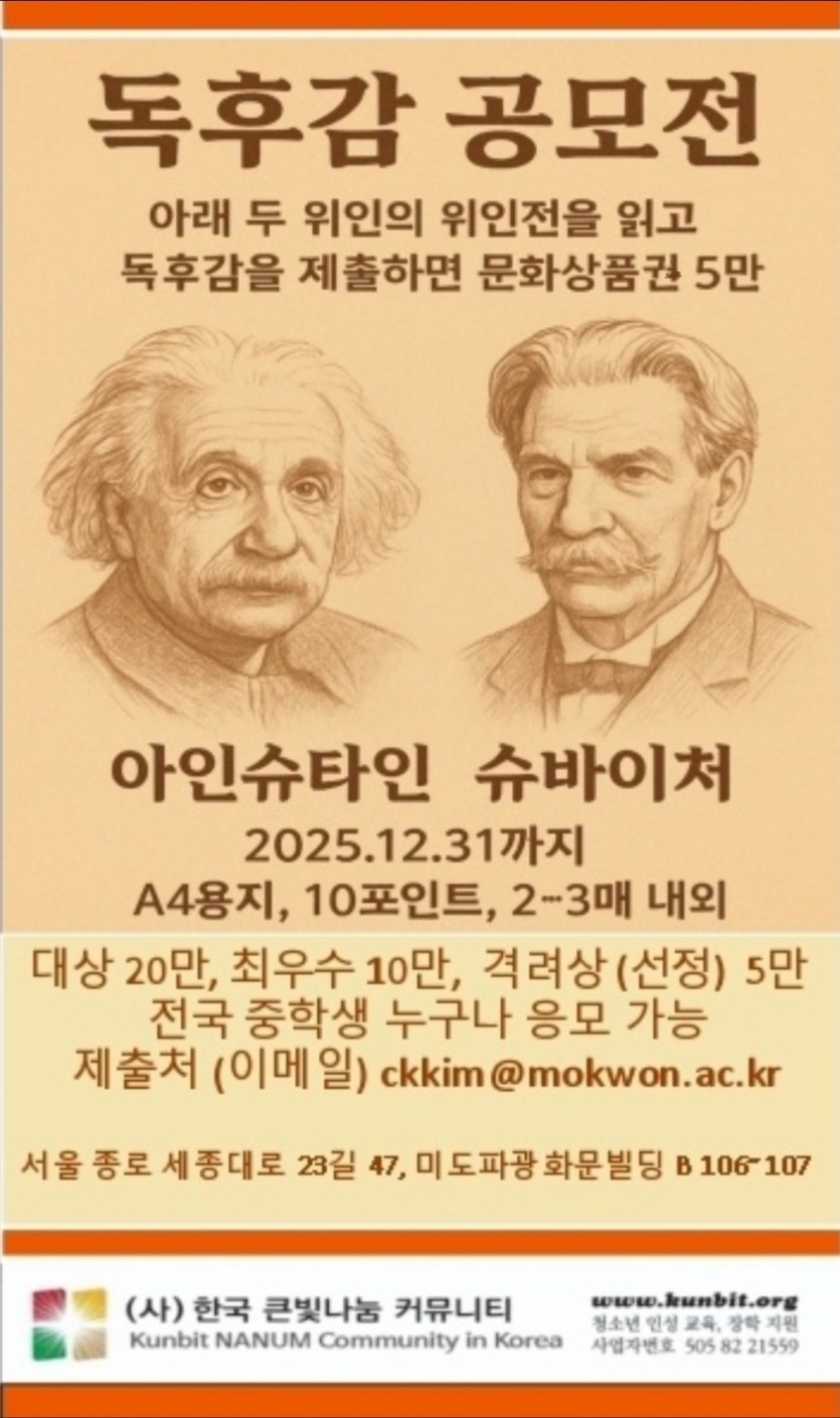 독후감을 작성하여 공모전에 응모하시기 바랍니다.